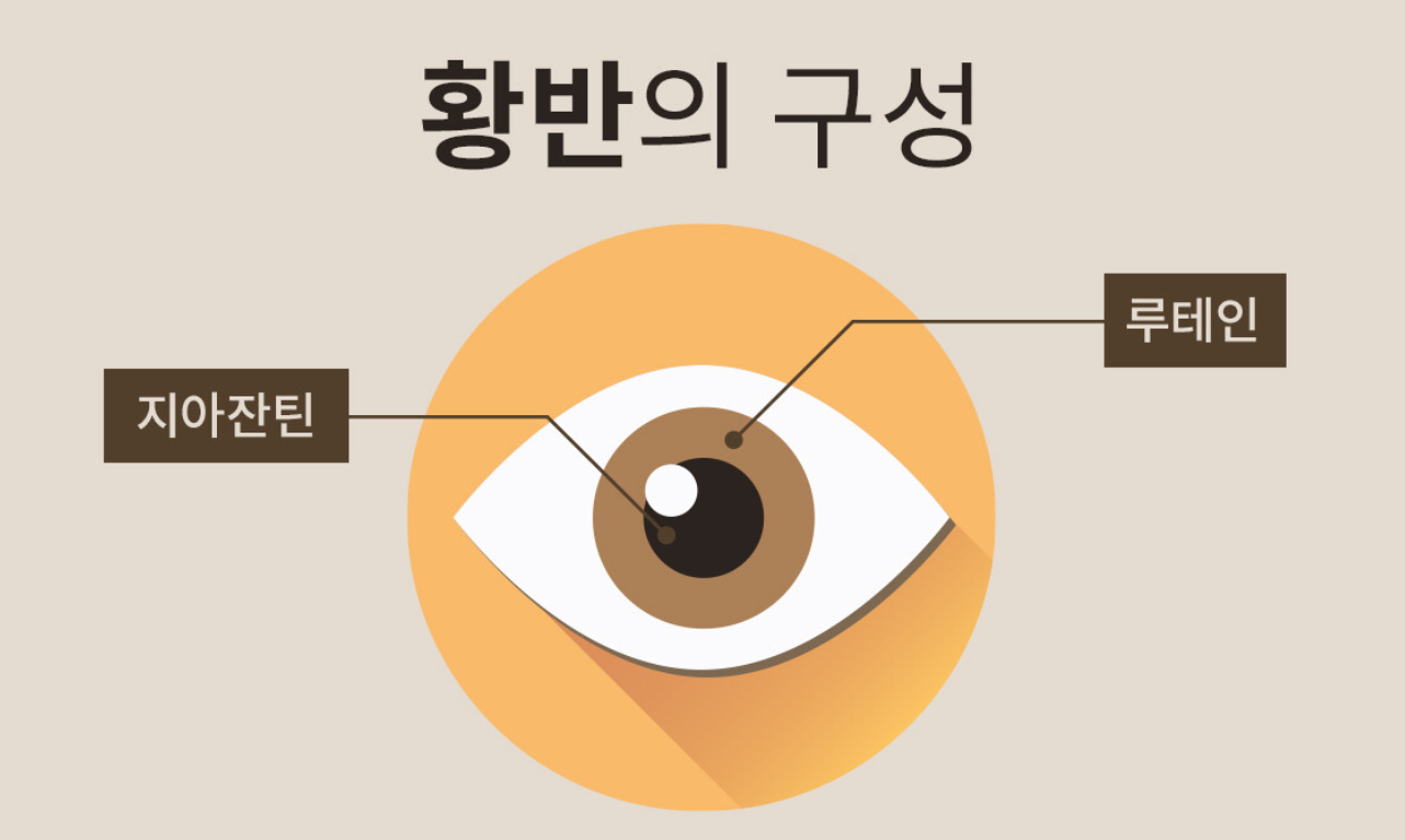 루테인은 황반 중심부를 보호하는 대표적인 영양소로, 청색광(블루라이트)과 자외선으로부터 시세포를 지켜준다. 보통 "침침함 개선=루테인"이라고 알려져 있지만 ‘침침함 개선’에만 국한된 성분이 아니라, 사실상 눈의 전반적인 노화 방지 필터 역할을 한다. 루테인과 지아잔틴은 눈의 망막 중심부인 황반에 존재하며, 블루라이트와 자외선으로부터 시세포를 보호하고 산화 스트레스를 줄이는 핵심 영양소다. 미국 국립보건원(AREDS2 연구)에 따르면, 루테인·지아잔틴을 함께 섭취한 그룹은 황반변성 위험이 최대 25% 낮아졌으며, 시각 민감도도 개선되었다고 한다. 뿐만 아니라 루테인은 피부와 뇌 신경 조직에도 존재해